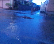 あまりの集中的豪雨で側溝が逆流してたりで道路小川になってる!!